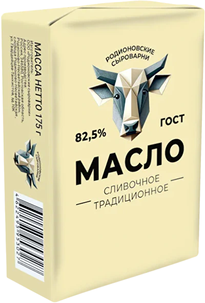 - Масло сливочное Традиционное 82,5% «Родионовские сыроварни».