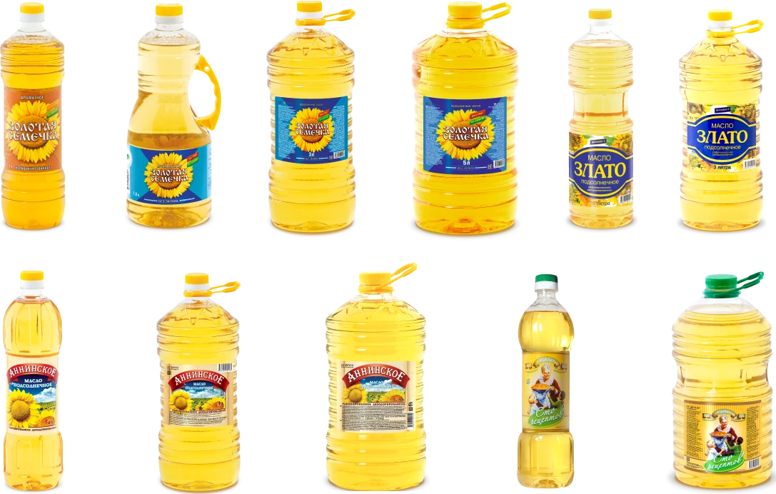 - Масло подсолнечное рафинированное дезодорированное вымороженное первого сорта «Золотая семечка», «Злато», «Аннинское», «Сто рецептов».
